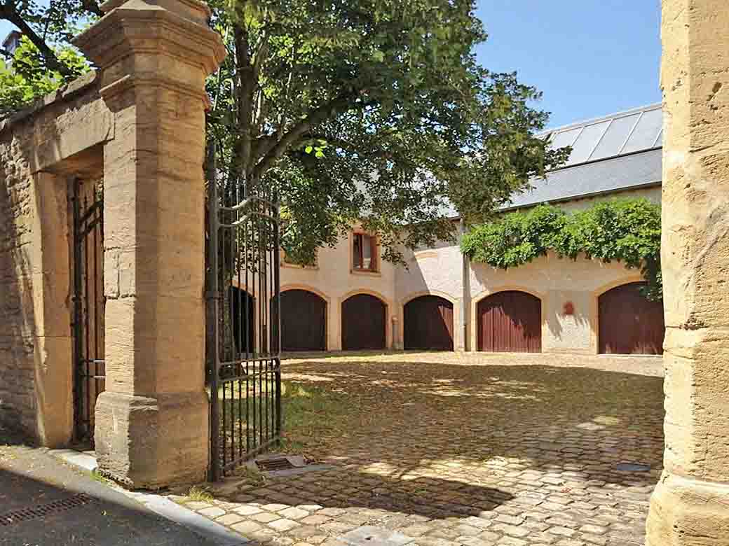 Ga links de Grand-rue in, maar kijk voor je verder loopt achterom in de Rue de la Poste naar de achtergevel van Grand-rue 50.