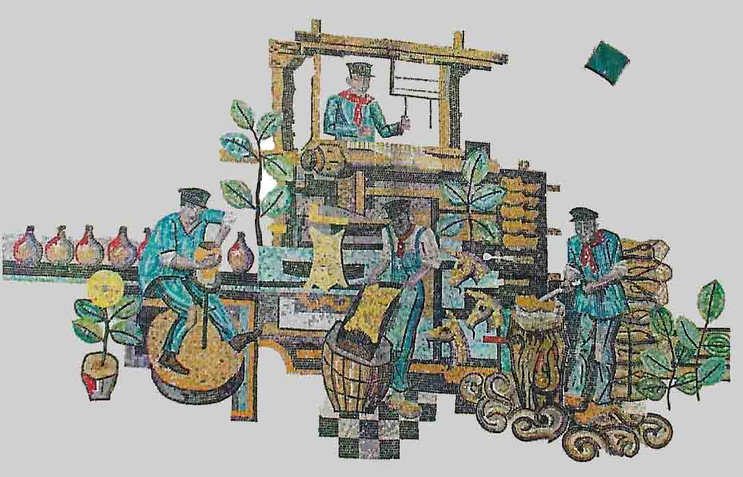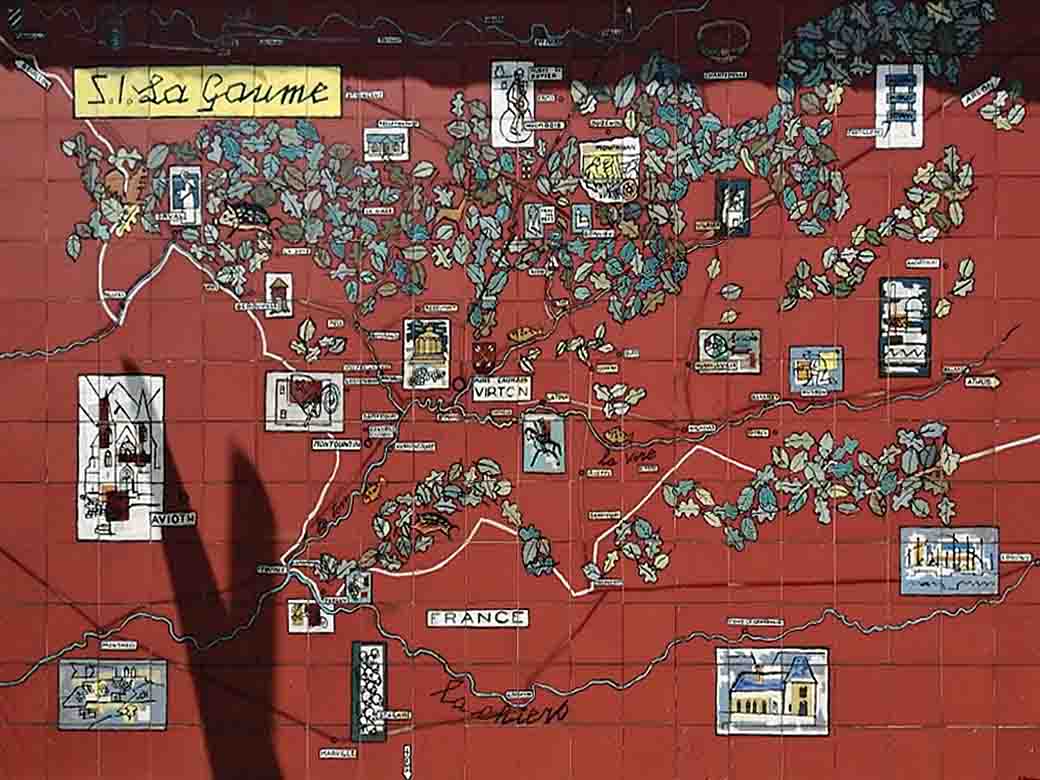 Ernest Bernardy heeft hier de Gaumestreek in keramiek weergegeven met de diverse attracties en bezienswaardigheden. De in 1923 geboren Bernardy heeft talrijke woonhuizen in de Gaumestreek van mozaïeken voorzien, voordat hij zich op het eind van zijn leven gaat toeleggen op schilderen, eerst aquarel, daarna olieverf. Hij is in 2000 overleden.