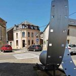 Je staat nu voor de ‘Patria’, de enige bioscoop in Virton en omgevende dorpen. Sinds november 2005 staat hier de spiraal van Jean-Paul Deller, een gebeeldhouwd stukje film van 5 meter lengte, 2,80 m hoog.